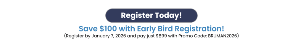 $899 per participant – Early Bird Discount available through January 7, 2026 – Promo Code: BRUMAN2026